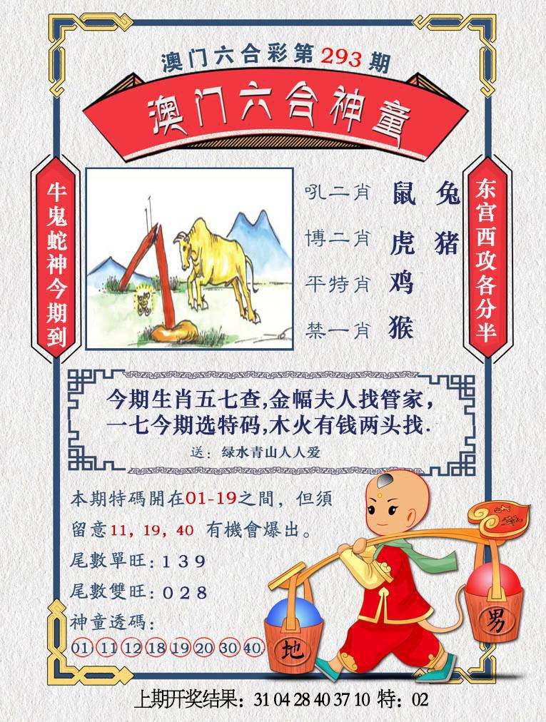 293期:新澳彩【财神到也★男女中特】21点25分公开