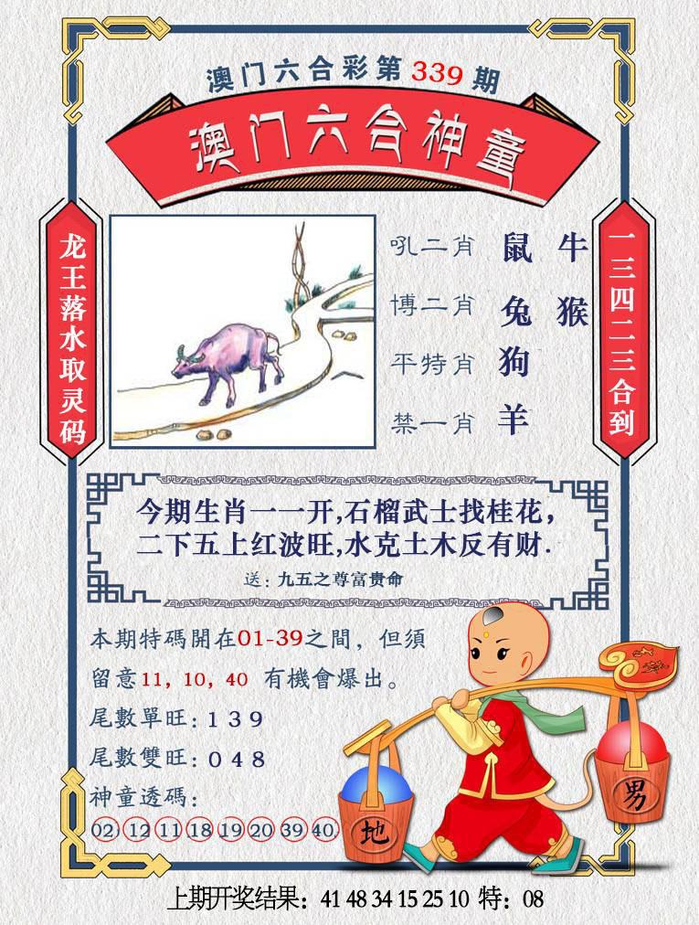 339期:新澳彩【稳中求赚★①肖①码】